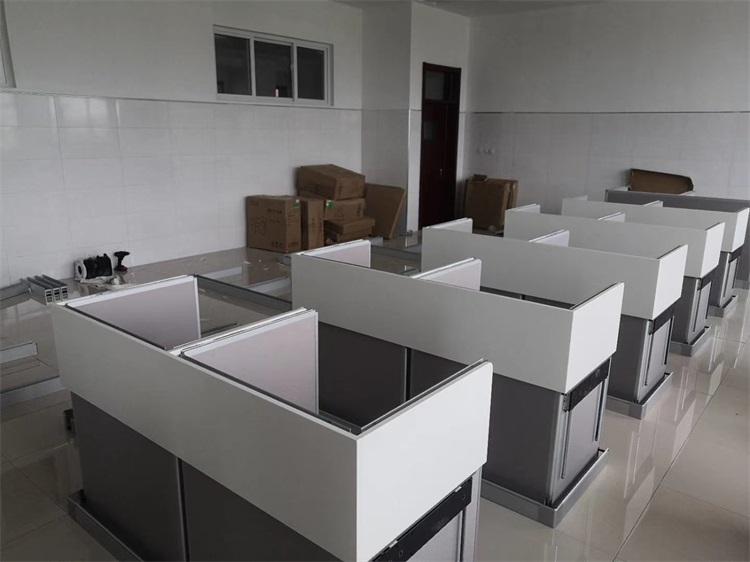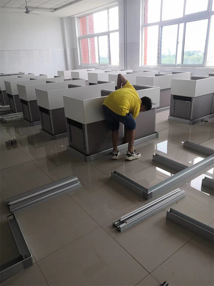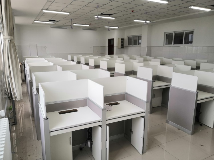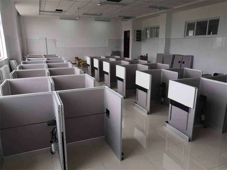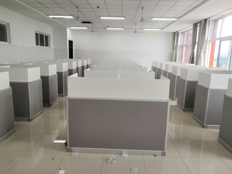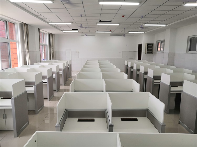 項(xiàng)目地點(diǎn): 山東泰安市英雄山中學(xué)--3間計(jì)算機(jī)語(yǔ)音教室 項(xiàng)目時(shí)間: 2020年8月 項(xiàng)目背景: 面對(duì)國(guó)家招生考試制度改革下,普通考場(chǎng)不能滿足需求,臨時(shí)增加建造多個(gè)考試專用考場(chǎng),在時(shí)間和資金方面都不現(xiàn)實(shí)。所以需要一種屏風(fēng)擋板可以升降的電腦桌,來(lái)解決標(biāo)準(zhǔn)化考場(chǎng)與計(jì)算機(jī)語(yǔ)音教室的切換使用,實(shí)現(xiàn)一個(gè)教室多用途的解決方案。