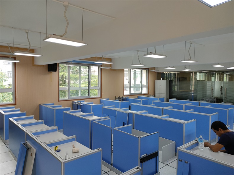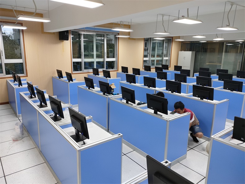 項(xiàng)目地點(diǎn): 上海滬東外國(guó)語(yǔ)學(xué)校 項(xiàng)目時(shí)間: 2020年8月 項(xiàng)目背景: 面對(duì)國(guó)家招生考試制度改革下,普通考場(chǎng)不能滿足需求,臨時(shí)增加建造多個(gè)考試專用考場(chǎng),在時(shí)間和資金方面都不現(xiàn)實(shí)。所以需要一種屏風(fēng)擋板可以升降的電腦桌,來(lái)解決標(biāo)準(zhǔn)化考場(chǎng)與計(jì)算機(jī)語(yǔ)音教室的切換使用,實(shí)現(xiàn)一個(gè)教室多用途的解決方案。 主要功能: 根據(jù)上海滬東外國(guó)語(yǔ)學(xué)校對(duì)教室使用需求,在產(chǎn)品設(shè)計(jì)方面,電腦桌的左、右、前三面帶升降屏風(fēng)擋板,用于隔斷相鄰考生視線。當(dāng)屏風(fēng)升起時(shí),可以用作教室語(yǔ)音標(biāo)準(zhǔn)化考試使用,當(dāng)屏風(fēng)降下時(shí),可以用于學(xué)生上課使用。實(shí)現(xiàn)了一室多用、考學(xué)合一。 |