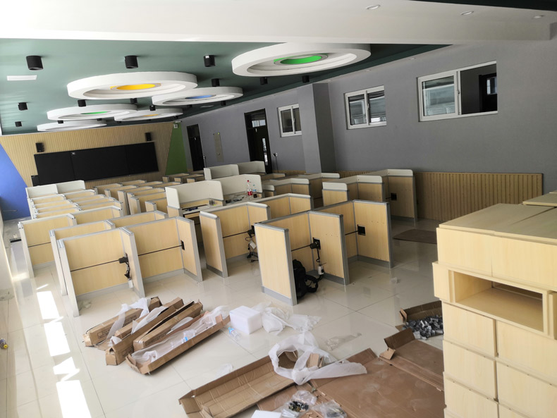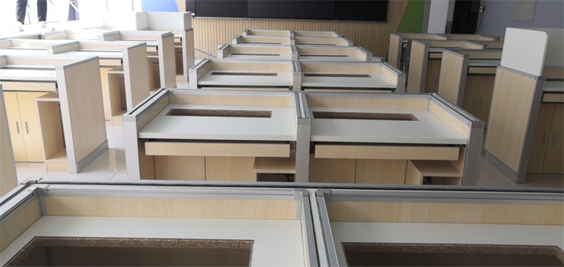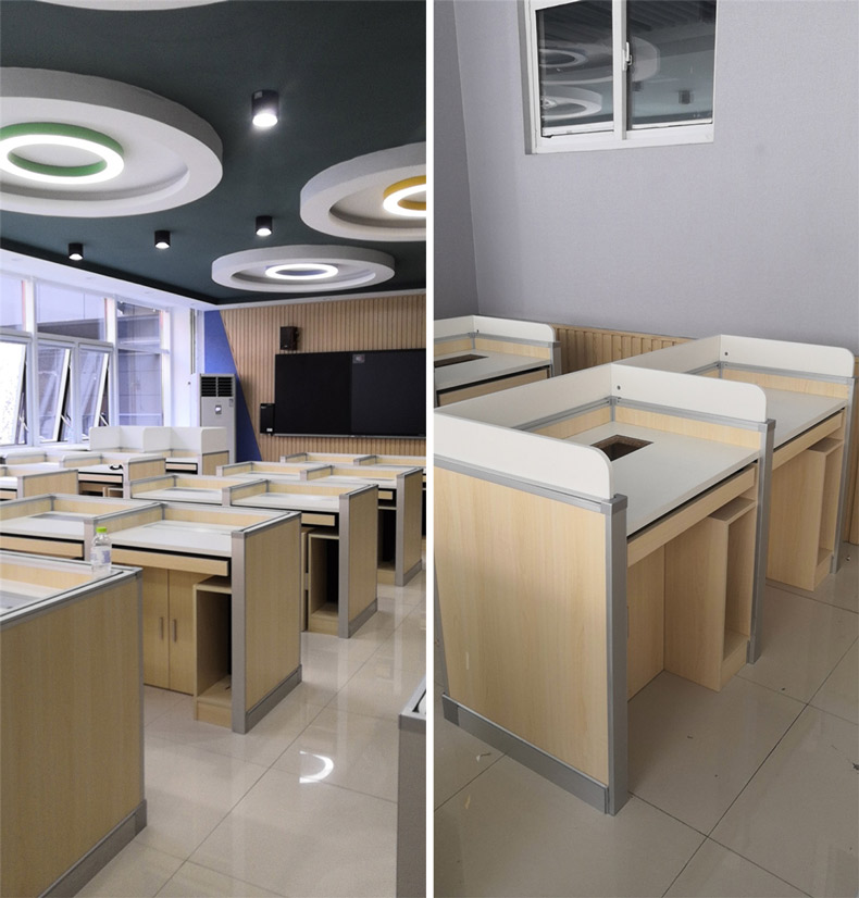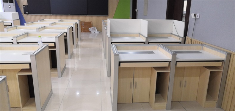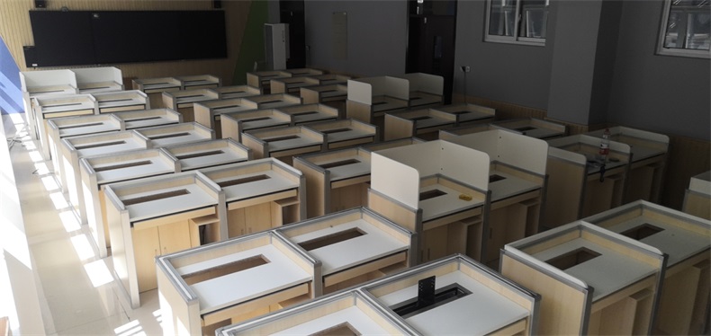項目地點: 山東濟南寶華中學 項目時間: 2020年8月 項目背景: 面對國家招生考試制度改革下,普通考場不能滿足需求,臨時增加建造多個考試專用考場,在時間和資金方面都不現(xiàn)實。所以需要一種屏風擋板可以升降的電腦桌,來解決標準化考場與計算機語音教室的切換使用,實現(xiàn)一個教室多用途的解決方案。 主要功能: 根據(jù)浙山東濟南寶華中學對教室使用需求,在產(chǎn)品設計方面,電腦桌的左、右、前三面帶升降屏風擋板,用于隔斷相鄰考生視線。當屏風升起時,可以用作教室語音標準化考試使用,當屏風降下時,可以用于學生上課使用。實現(xiàn)了一室多用、考學合一。 |