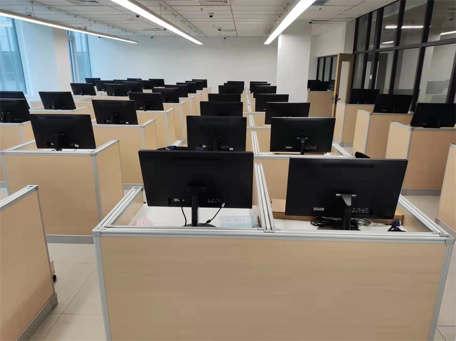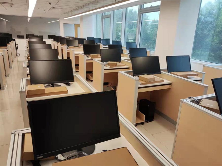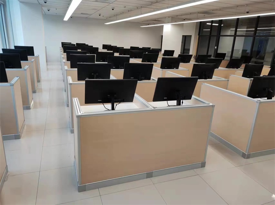 根據(jù)北京清華附中外籍人員子女學校對升降屏風語音教室的使用需求,方方智能對該教室設計了一套可以升降的智能升降屏風桌,每個座位都有可升降的屏風,考試時屏風升起后可有效的隔斷相鄰人的正常視線,防噪音效果,可達到互不干擾的作用,當屏風降下時,可以用于學生日常上課使用。實現(xiàn)了一室多用、考學合一。