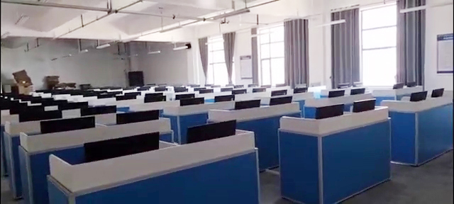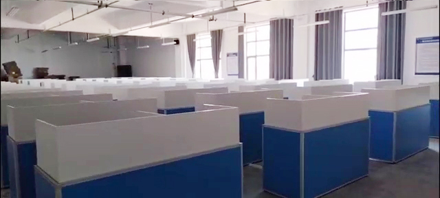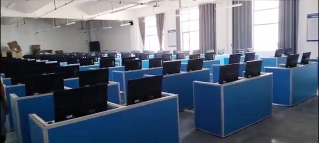 根據湖北三峽職業技術學院對升降屏風語音教室的使用需求,方方智能對該教室設計了一套可以升降的智能升降屏風桌,每個座位都有可升降的屏風,考試時屏風升起后可有效的隔斷相鄰人的正常視線,防噪音效果,可達到互不干擾的作用,當屏風降下時,可以用于學生日常上課使用。實現了一室多用、考學合一。