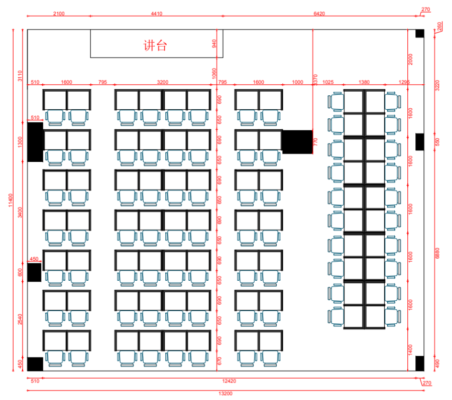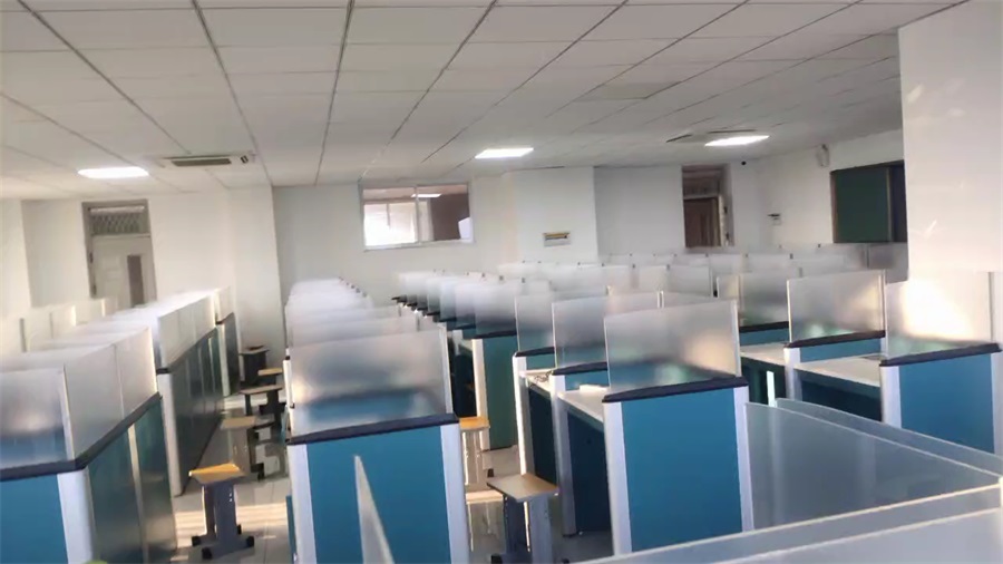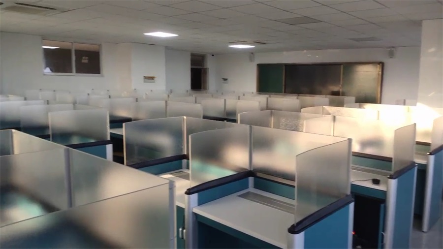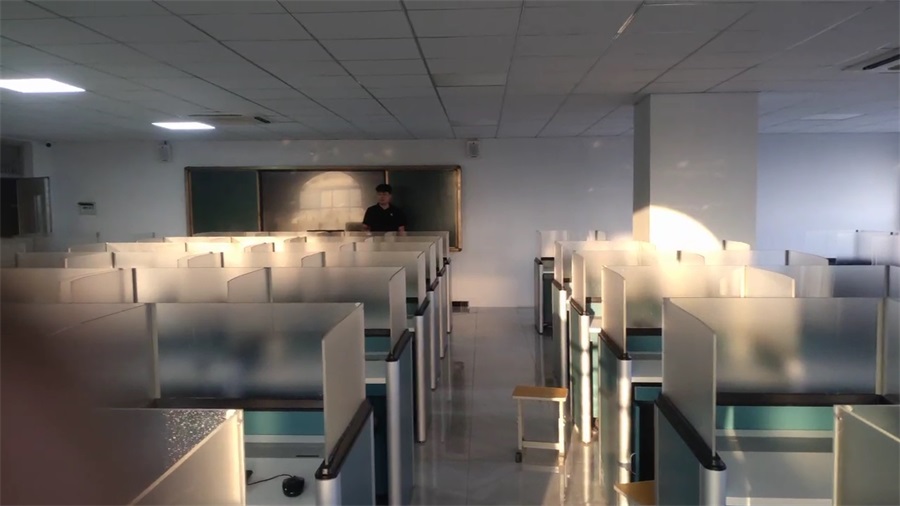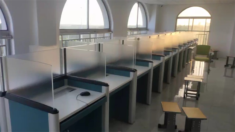 根據山東臨沂電力學校對升降屏風語音教室考場的使用需求,本次教室設計了一套智能升降屏風桌,每個座位都有可升降的屏風,考試時屏風升起后可有效的隔斷相鄰人的正常視線,防噪音效果,可達到互不干擾的作用,平時培訓學習時屏風降下;每個桌子桌面裝有液晶屏升降器,需要使用顯示屏時,隱藏在桌子內部的液晶屏升降器把顯示屏從桌子下面升到桌子上面;當不使用顯示屏時,液晶升降器自動下降,顯示屏隱藏在桌子內部,起到防盜、防塵作用,保持桌子表面的平整和美觀,和普通的教室無異,升降屏風桌實現了空間資源進行最大化的利用,平衡解決了師生之間的溝通與學生考試相互干擾的需要,滿足一教室多用的需求