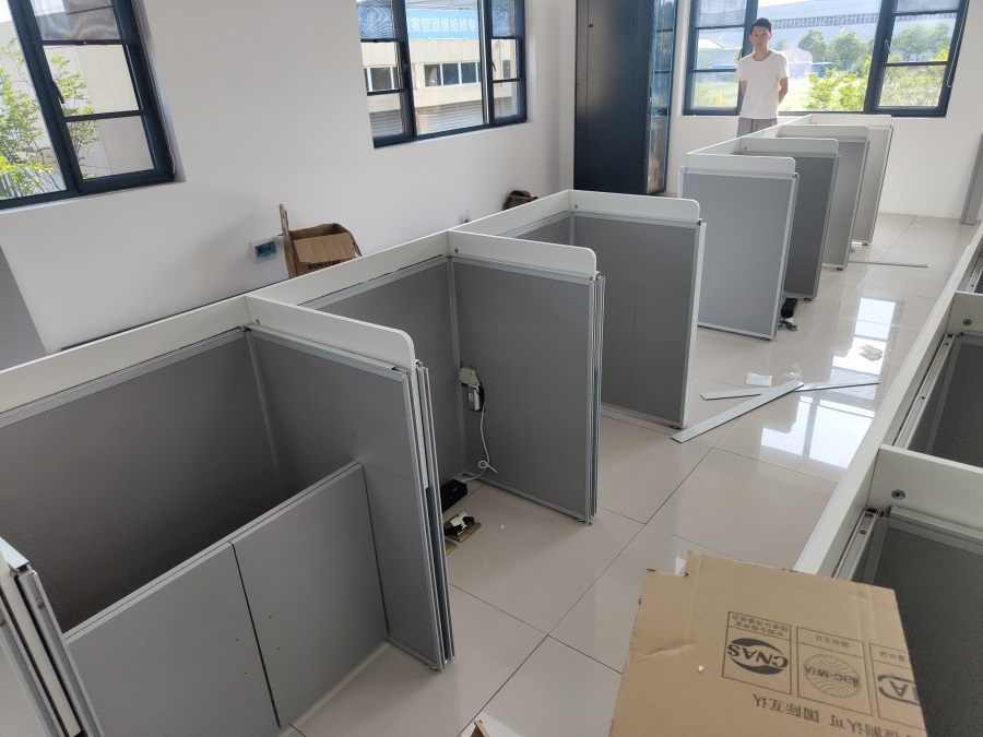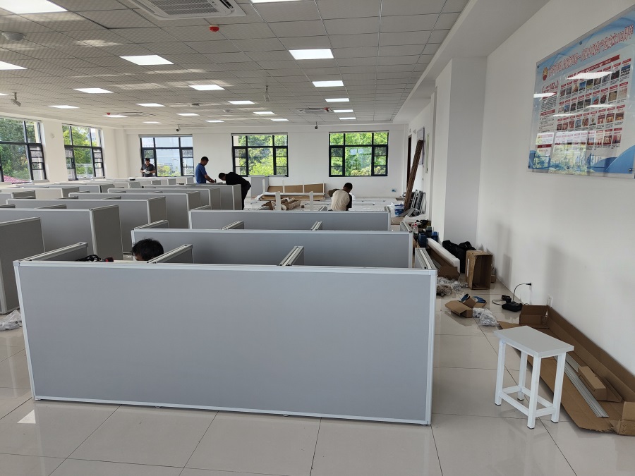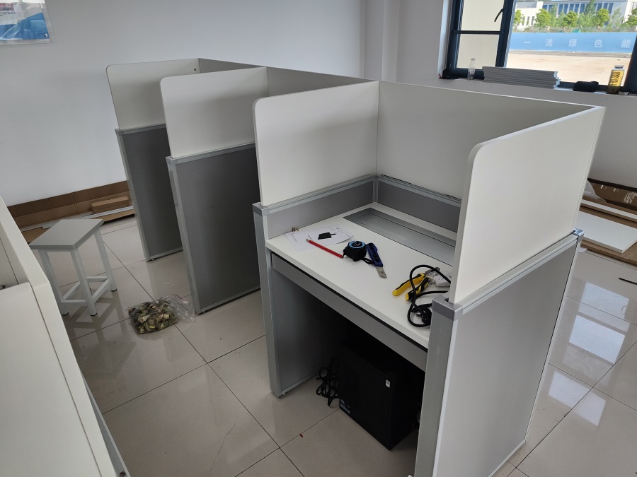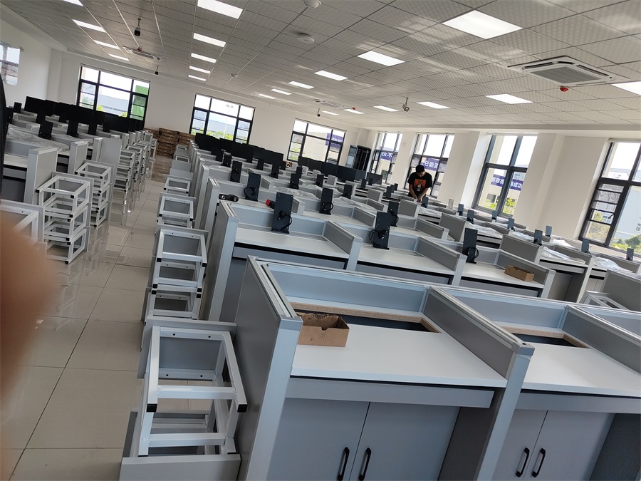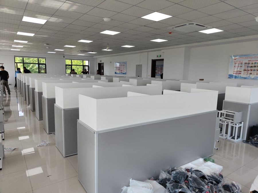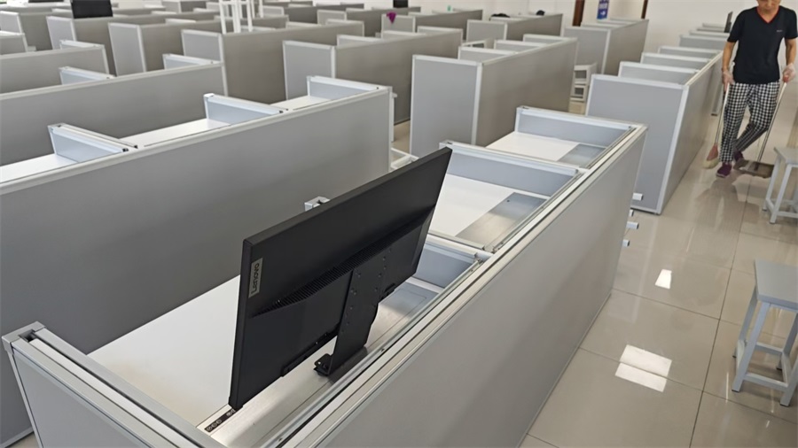 的使用需求,方方智能對該培訓(xùn)室設(shè)計(jì)了一套可以升降的智能升降屏風(fēng)桌,每個(gè)座位都有可升降的屏風(fēng),考試時(shí)屏風(fēng)升起后可有效的隔斷相鄰人的正常視線,防噪音效果,可達(dá)到互不干擾的作用,當(dāng)屏風(fēng)降下時(shí),可以用于職員日常培訓(xùn)上課使用。實(shí)現(xiàn)了一室多用、考學(xué)合一。