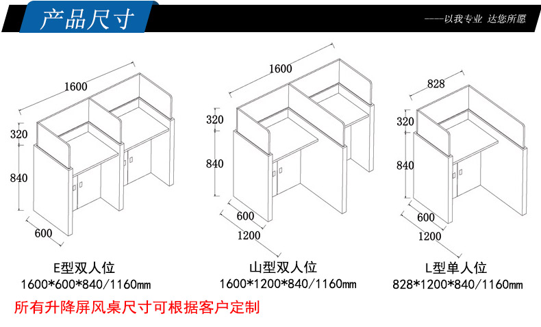 1、*固定屏風高度850mm,桌面高度750mm。活動屏風行程850-1400mm。形成獨立空間,起到良好的隔音隔斷效果,確保能最大程度降低相鄰學生之間考試時的互相干擾和影響.