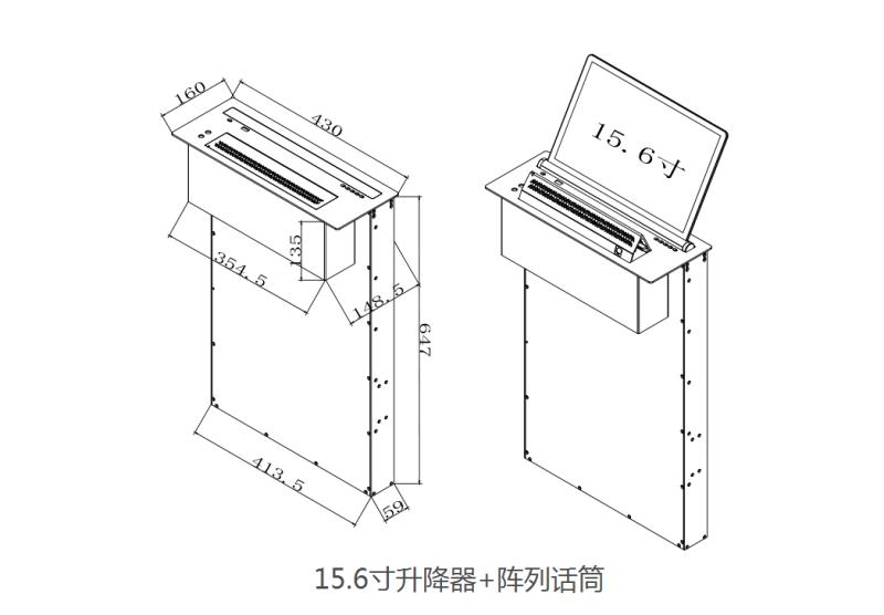 超薄帶陣列話筒升降器是在超薄升降器的基礎上,增加了陣列數字陣列話筒功能。