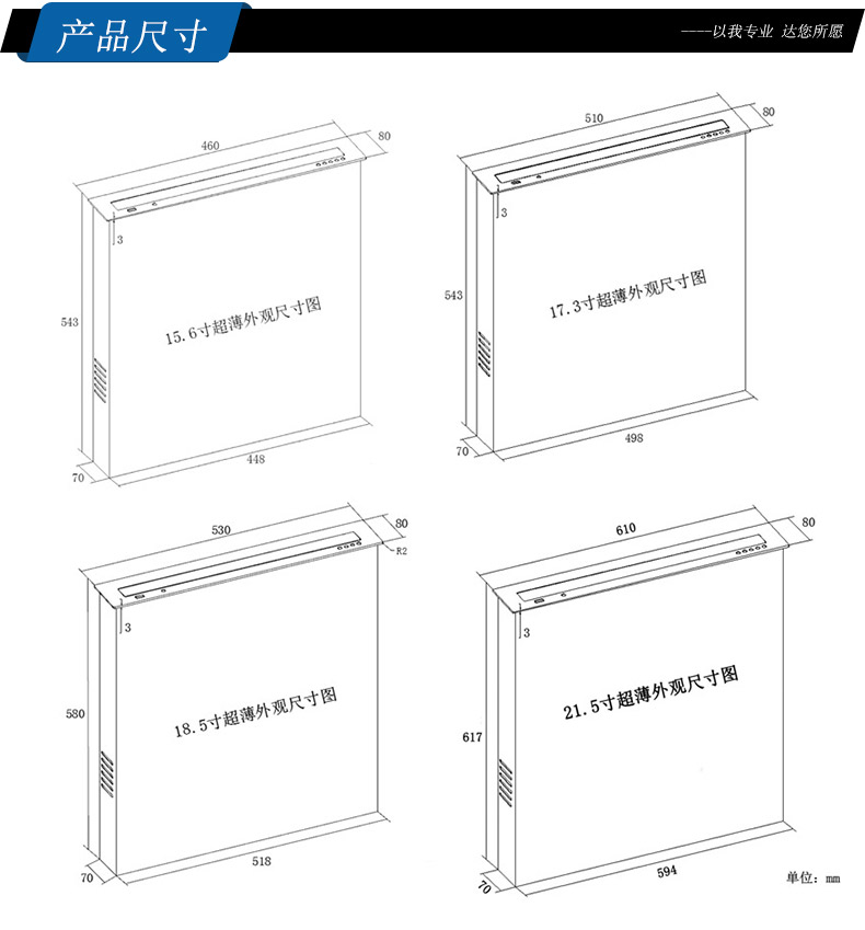 屏幕尺寸: 15.6寸/17.3寸/18.5寸/21.5寸;背面帶7寸電子桌牌